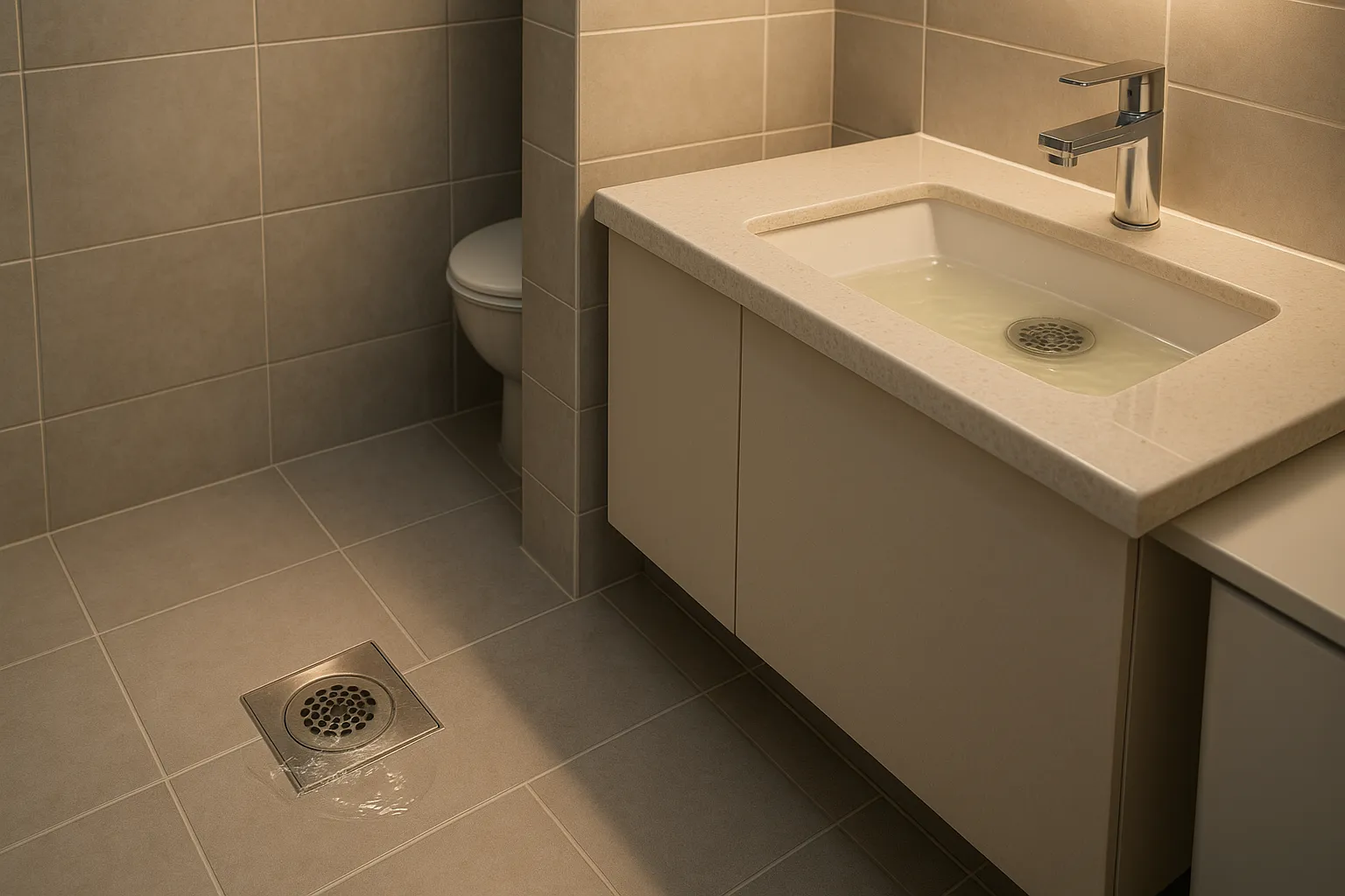 화장실 세면대나 샤워 배수구에서 물이 빠져야 할 타이밍에 역류하거나 맺혀 있다
